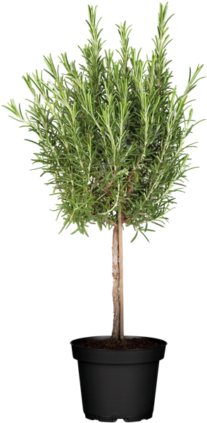Highlight auf der Fensterbank – das Rosmarin-Stämmchen (Rosmarin officinalis). Achten Sie darauf, dass es viel Licht und Sonne abbekommt. In der Wohnung blüht Rosmarin von März bis April. Ziert das Stämmchen Ihren sonnigen Balkon oder die Terrasse, blüht es ab Mai. Ihre Blüten in Hellblau locken hier zahlreiche Schmetterlinge, Bienen und andere Bestäuber an. Rosmarin braucht wenig Wasser.